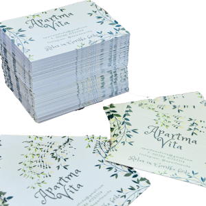 1. Vizitke: Vizitke kartice iz različnih vrst materialov (papir ali kombinacije s PVC), na katere potiskamo informacije o posamezniku, njihovem imenu, nazivu, podjetju in kontaktih. Uporabljajo se za predstavitev in izmenjavo podatkov med poslovnimi stiki.